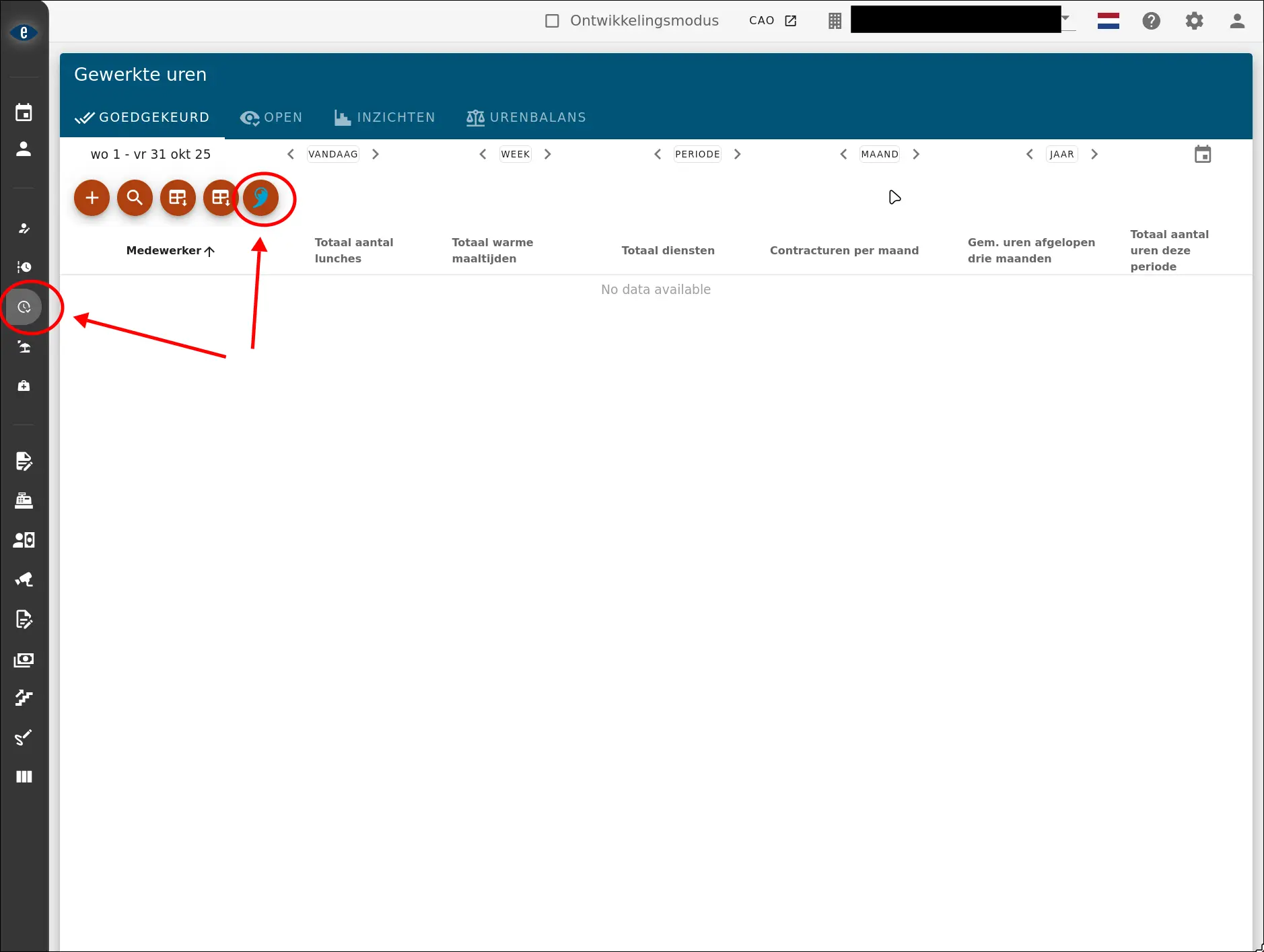 Vervolgens gebruik je de Nostradamus knop bij de gewerkte uren om de uren te importeren.