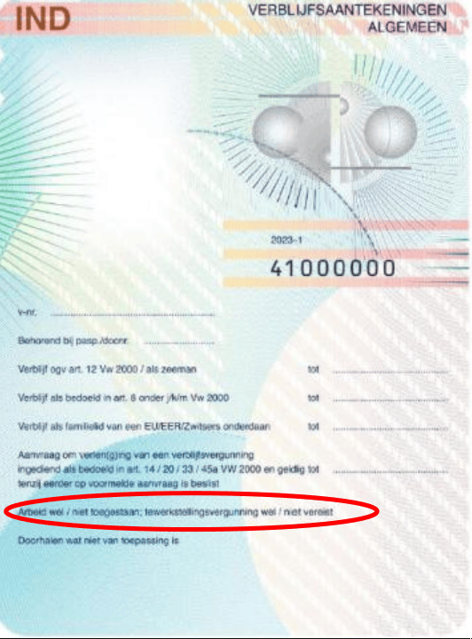 - De werknemer heeft een sticker in het paspoort met daarop de tekst uit lid 5 Artikel 3.1 Voorschrift Vreemdelingen 2000