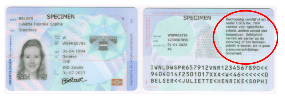 - De werknemer is nog in afwachting van een besluit over de verblijfsvergunning en heeft een vreemdelingen identiteitsbewijs met daarop de tekst uit lid 5 Artikel 3.1 Voorschrift Vreemdelingen 2000